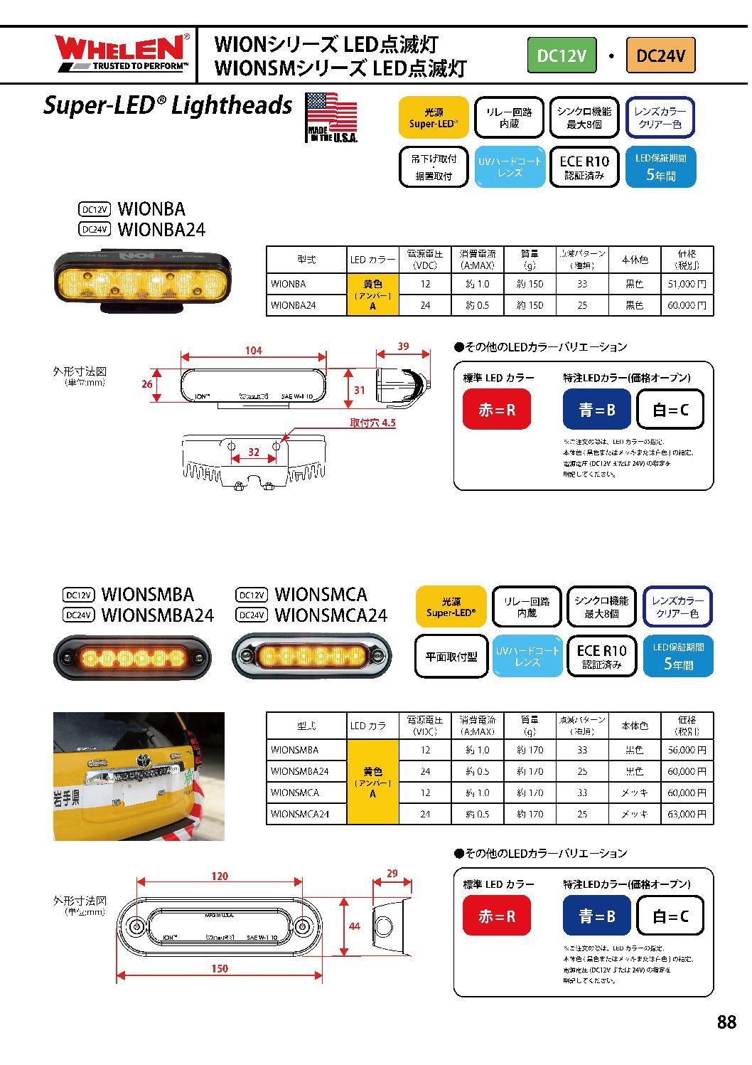 | WIONSMBA24 | 黄色 (アンバー) A | 24 | 約0.5 | 約170 | 25 | 黒色 | 60,000円 |